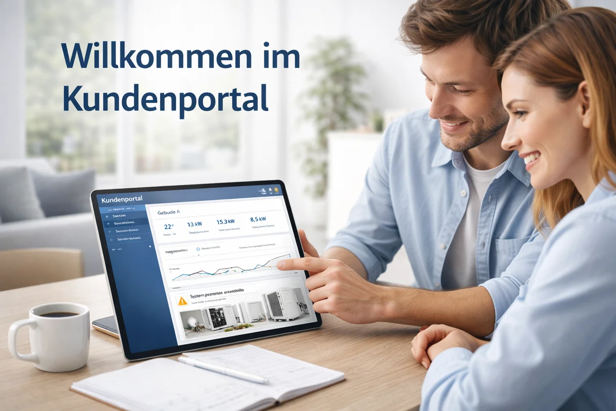Sehen Sie, wie das Kundenportal Ihre Anlagen, Wartungen und Förderungen übersichtlich zusammenführt.
